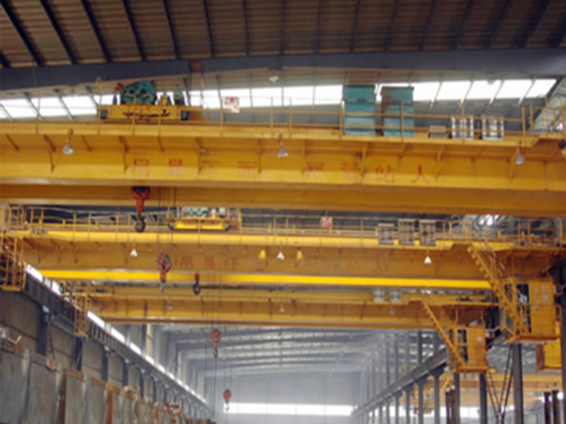 橋式起重機是橫架于車間、倉庫和料場上空進行物料吊運的起重設備。由于它的兩端坐落在高大的水泥柱或者金屬支架上,形狀似橋。橋式起重機的橋架沿鋪設在兩側高架上的軌道縱向運行,可以充分利用橋架下面的空間吊